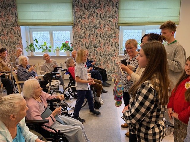 Szkolne Koło Wolontariatu przygotowało dla każdego pensjonariusza kolorowe pisanki oraz plakaty z życzeniami świątecznymi. Spotkanie przebiegło w serdecznej i życzliwej atmosferze. Była to również okazja do nauki empatii, wrażliwości oraz budowania relacji międzypokoleniowych.