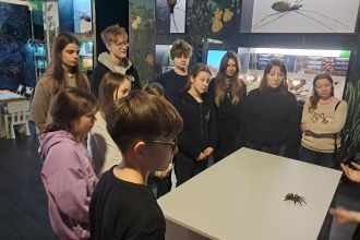 Członkowie szkolnego koła przyrodniczego podczas zajęć edukacyjnych w Muzeum Przyrodniczym Uniwersytetu Wrocławskiego - 08.10.2025r.